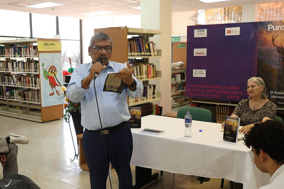 En el marco del Día Internacional del Libro y los Derechos de Autor, el Gobierno de Sonora, a través de la Secretaría de Educación y Cultura y el Instituto Sonorense de Cultura, llevó a cabo la presentación del poemario Puro Sonora en la Biblioteca “Bartolomé Delgado de León”, ubicada en la Casa de la Cultura de Sonora.
